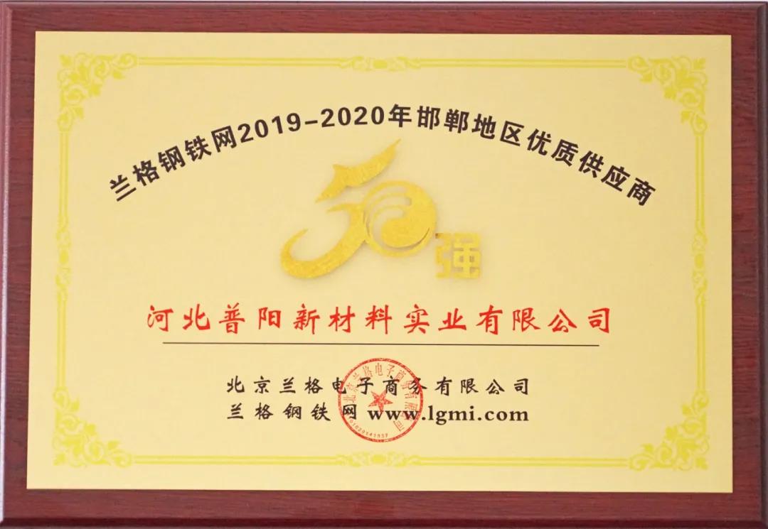 論壇對邯鄲地區優(yōu)質(zhì)供應商和鋼鐵流通行業(yè)卓越領(lǐng)軍人物進(jìn)行了表彰,河北普陽(yáng)新材料實(shí)業(yè)有限公司榮獲“蘭格鋼鐵網(wǎng)2019-2020年邯鄲地區優(yōu)質(zhì)供應商50強”榮譽(yù)稱(chēng)號,總經(jīng)理劉超當選“蘭格鋼鐵網(wǎng)2020年度邯鄲地區鋼鐵流通行業(yè)卓越領(lǐng)軍人物”。