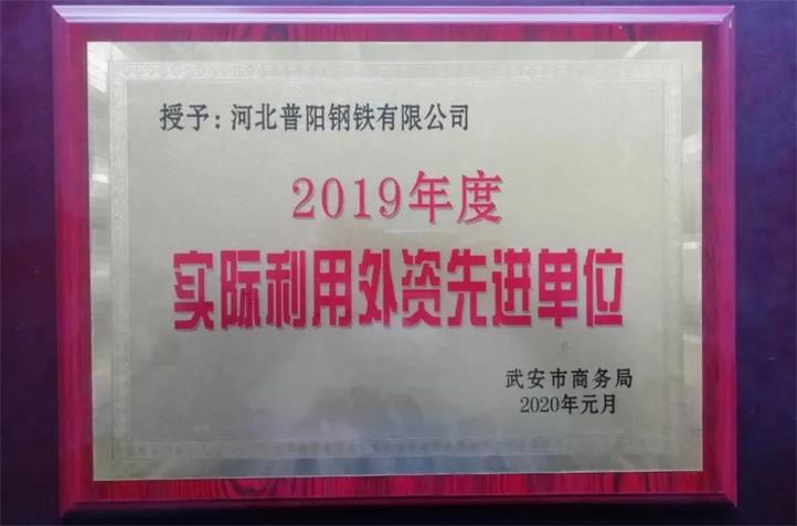 日前,河北普陽(yáng)鋼鐵集團收到市商務(wù)局頒發(fā)的榮譽(yù)牌匾,2019年面對嚴峻的外貿形勢,普陽(yáng)鋼鐵集團深入踐行“國內國外兩個(gè)市場(chǎng)都要占領(lǐng)”的經(jīng)營(yíng)戰略,努力開(kāi)展出口貿易,在推動(dòng)我市引進(jìn)外資、加強對外貿易方面作出了突出 成績(jì),鑒于此,河北普陽(yáng)鋼鐵有限公司、中普(邯鄲)鋼鐵有限公司被市商務(wù)局授予“2019年度實(shí)際利用外資先進(jìn)單位”榮譽(yù)稱(chēng)號。