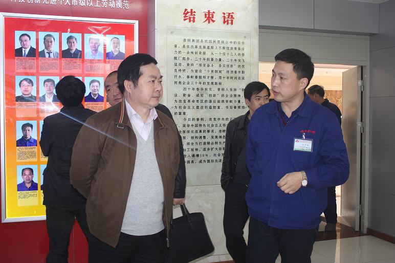 3月25日,江蘇沙鋼集團董事局總裁龔盛率領(lǐng)沙鋼集團有限公司副總經(jīng)理王科、集團安陽(yáng)永興公司董事長(cháng)李增偉、集團董事局生產(chǎn)部部長(cháng)顧黎榮、集團有限公司資源環(huán)保處長(cháng)張新等15人到我公司參觀(guān)、對標。公司總經(jīng)理石躍強、總經(jīng)理助理石現英、副總經(jīng)理李成安及相關(guān)單位負責人在三樓會(huì )議室與龔總一行進(jìn)行了會(huì )談。圖為公司總經(jīng)理石躍強陪同龔總參觀(guān)文化中心時(shí)的照片。