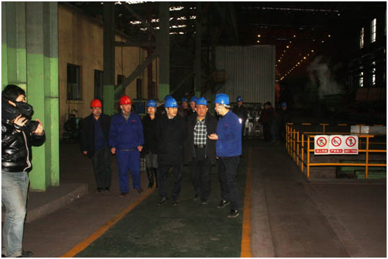 本報訊(編輯室)12月12日下午,東北大學(xué)王國棟院士、軋制及連軋技術(shù)自動(dòng)化國家重點(diǎn)實(shí)驗室主任吳迪、材料冶金學(xué)院副院長(cháng)朱苗勇等一行,在武安市副市長(cháng)崔耀鵬的陪同下視察了我公司1250熱卷廠(chǎng)和二期中厚板生產(chǎn)線(xiàn)。圖為總經(jīng)理石躍強、副總經(jīng)理陳丹峰陪同王國棟(右二)在二期中板生產(chǎn)線(xiàn)。