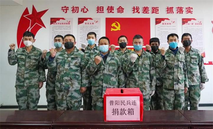 在接到集團發(fā)動(dòng)全員積極為武漢疫情捐款的倡議后,普陽(yáng)民兵連連長(cháng)曹振琪第一時(shí)間召集連隊全員(18名),按照自主自愿原則,為武漢疫區捐款,各隊員踴躍捐款,籌得善款3100元。