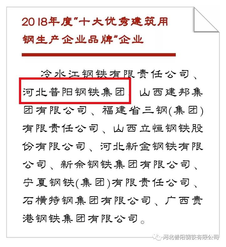 昨日,中國冶金報社發(fā)布了2018年度“十大優(yōu)秀建筑用鋼生產(chǎn)企業(yè)品牌”,我公司憑借卓越的產(chǎn)品質(zhì)量和廣泛的品牌影響力,榮列十大品牌第2位!這是繼5月9日榮獲 “中國品牌價(jià)值”排名第5后,我公司在品牌影響力方面獲得的又一重量級獎項!