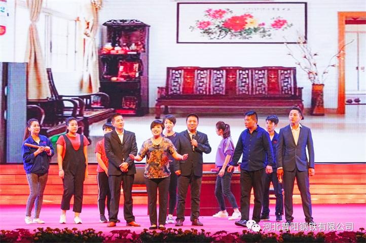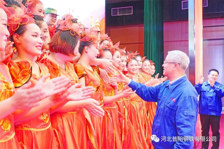 由普陽(yáng)人自編自演的歌伴舞、啞劇、小品、朗誦等節目,通過(guò)演員們激情的表演,表現的淋漓盡致,展現出了社會(huì )主義新時(shí)代的幸福場(chǎng)景,也表達了普陽(yáng)人對祖國的熱愛(ài)。由全體演職人員共同高歌的《普陽(yáng)之歌》,把晚會(huì )推向了高潮,隨后,陽(yáng)邑鎮領(lǐng)導和公司領(lǐng)導上臺與演職人員合影,董事長(cháng)郭恩元與演員們親切握手。