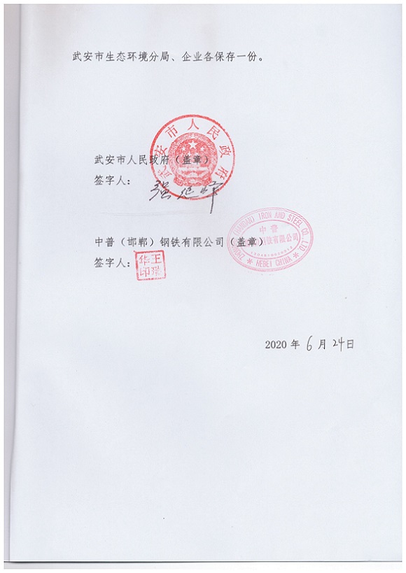 中普鋼鐵-武安市人民政府土壤環(huán)境重點(diǎn)監管企業(yè)污染防治責任書(shū)