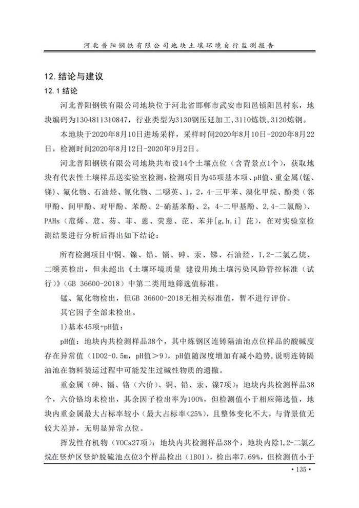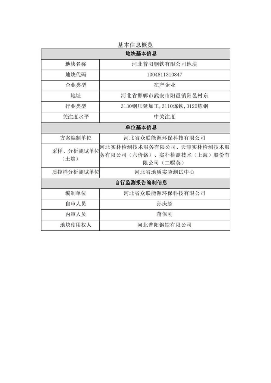 河北普陽(yáng)鋼鐵有限公司地塊土壤環(huán)境自行監測報告