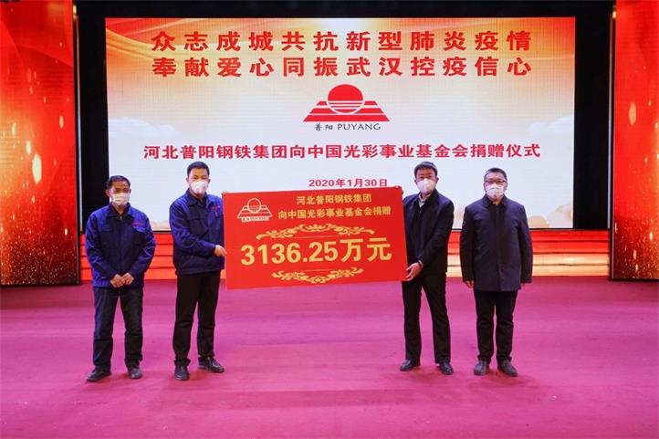 當前,新型冠狀病毒感染的肺炎疫情防控工作面臨嚴峻形勢,河北普陽(yáng)鋼鐵集團積極響應中央、省、市的號召,合計捐款3736.25萬(wàn)元用于疫情防控。其中,通過(guò)中共武安市委統戰部和市工商聯(lián)向中國光彩基金會(huì )捐獻人民幣3136.25萬(wàn)元(含員工捐款136.25萬(wàn)元),定向用于武漢地區的疫情防控工作。同時(shí),為大力支持武安市疫情防控工作,普陽(yáng)鋼鐵集團向武安市第一人民醫院(康二城煤礦隔離病區)捐獻人民幣600萬(wàn)元,定向用于采購必備的醫療物資。
